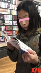 場所は大型な本屋さん系のお店で、コミックに夢中になっている女の子がターゲットです。