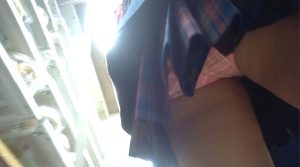 制服だと上着があり、フロントからのぱんちゅは、なかなか見れないのが基本。カバンやブレザー、場合によってはセータでスカートが押さえられて見えないんです。