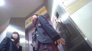 不自然なエレベーター待ちですが、女の子たちはおしゃべりに夢中で意識がそっちにいっているのが救い。でも、肝心な生ぱんつの女の子は後ろを向いてしまっているのが残念。