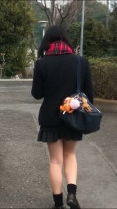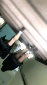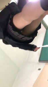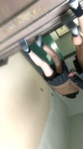 携帯で階段を上る生徒を隠し撮りしています。これはおじさんには真似できない撮影方法です。校内に飾りがあるわけでもなく、他の大人もいるわけでないので、文化祭というわけではなさそうです。