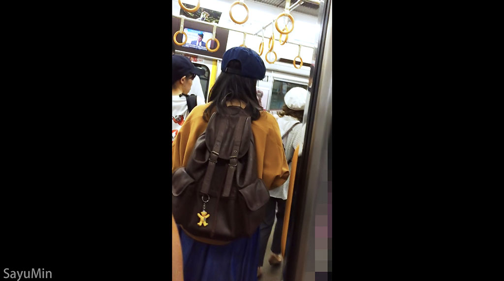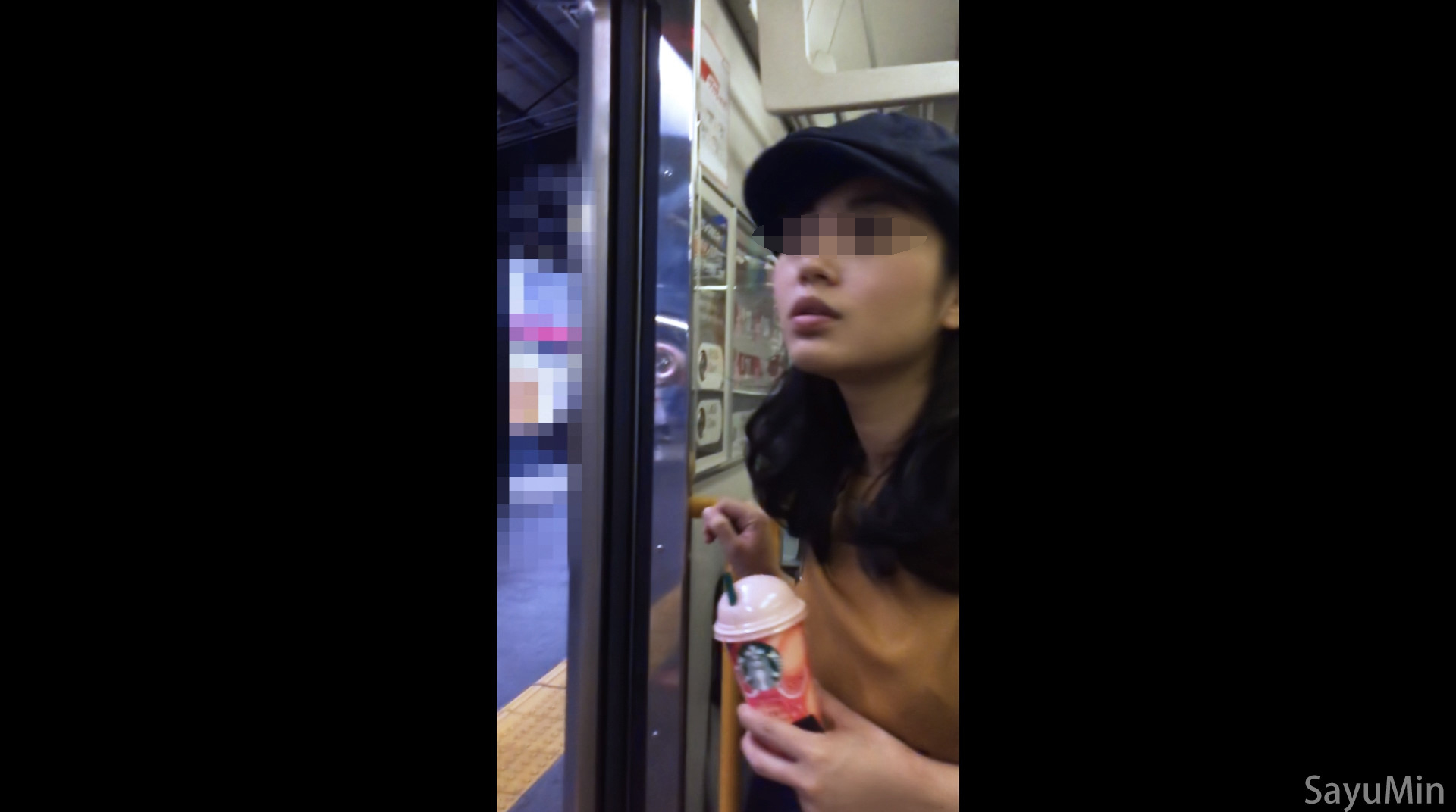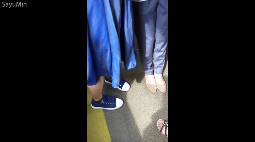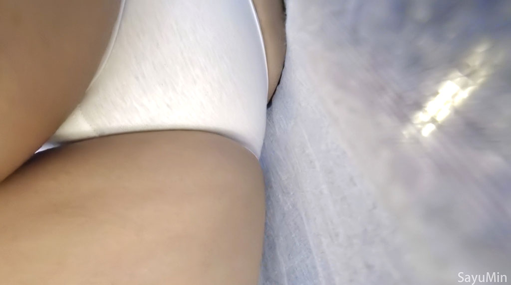 [SayuMin]白パンツ接写 帽子3人組の電車旅